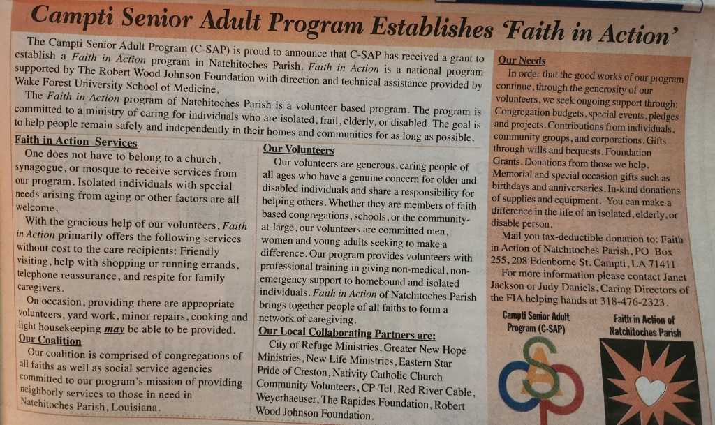 Campti Senior Adult Program Establishes ‘ Faith in Action’
