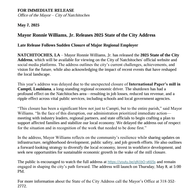 Mayor Ronnie Williams, Jr. Releases 2025 State of the City Address