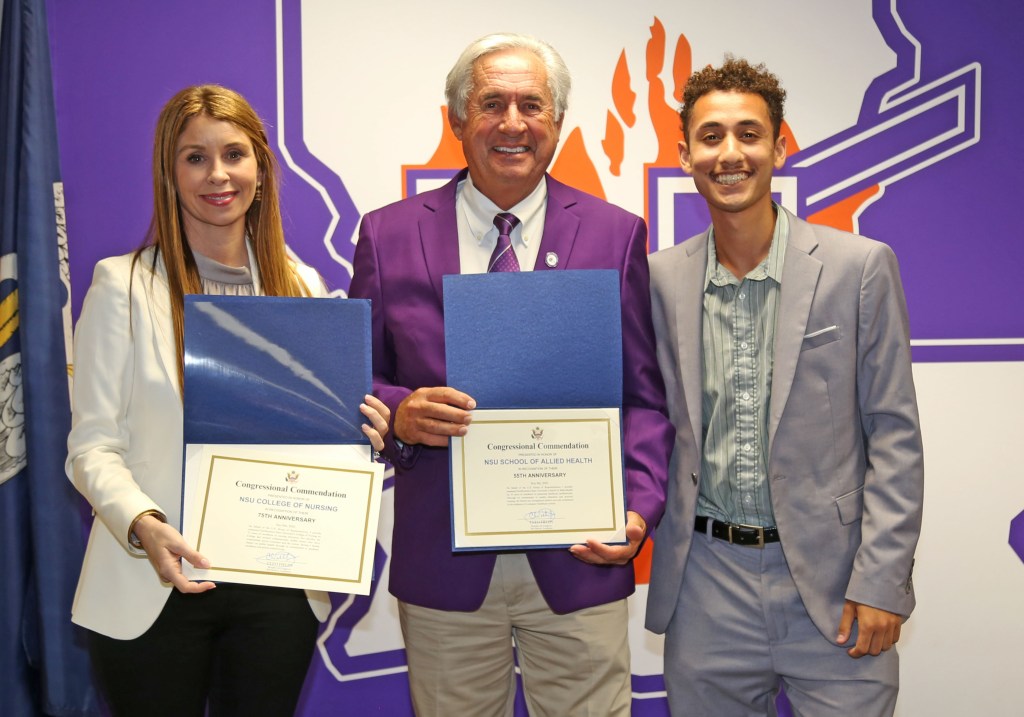 Colson Fontenot, a representative of Fields’ office who has family ties to Natchitoches and Cane River, presented the proclamations to NSU President James Genovese and Dr. Aimee Badeaux, dean of NSU’s College of Nursing and School of Allied Health, during a reception at NSU’s Cenla campus in England Industrial Park, Alexandria.