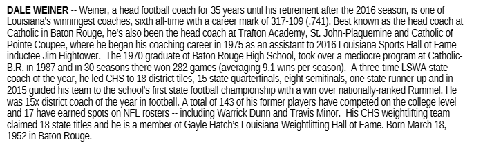 The festivities peak Saturday afternoon and evening with the Taste of Louisiana Reception at the Hall of Fame museum from 5-6:45, followed by the Induction Ceremony tipping off promptly at 7 o’clock at the nearby Natchitoches Events Center.