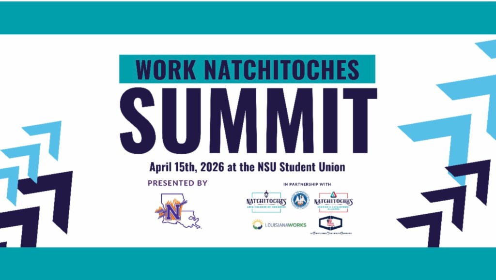 The Work Natchitoches Summit will be hosted by Northwestern State University’s Office of Economic Development and the Natchitoches Area Chamber of Commerce in the NSU Student Union from 8:30 a.m.-2 p.m. Wednesday, April 15.