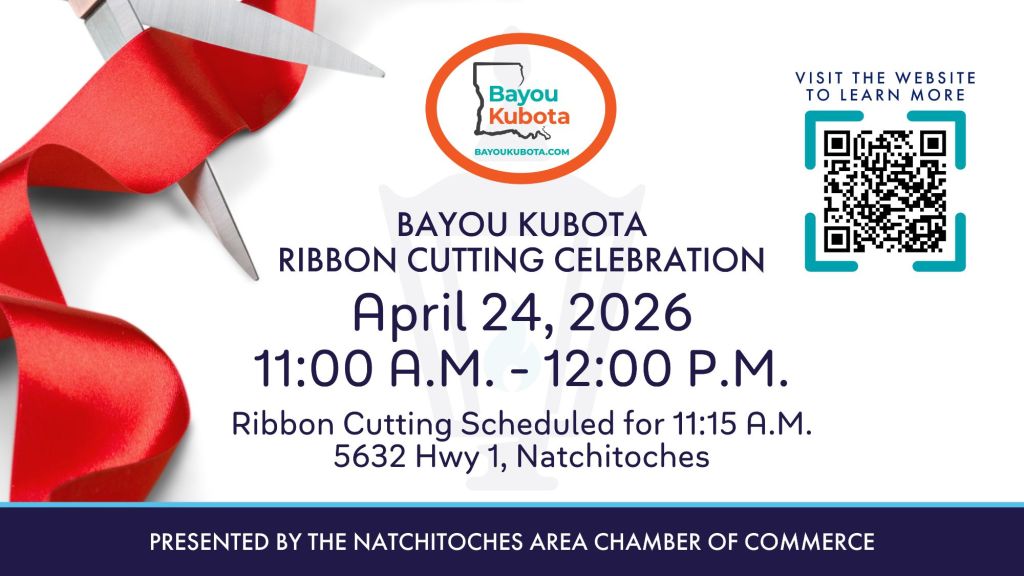 Natchitoches, LA, April 13, 2026: Bayou Kubota is bringing its service offerings to Natchitoches Parish with the opening of a new location. The Natchitoches Area Chamber of Commerce will partner with the team to celebrate with an official Open House and Ribbon Cutting Ceremony on Friday, April 24, from 11:00 a.m. to 12:00 p.m. at 5632 Highway 1 in Natchitoches.