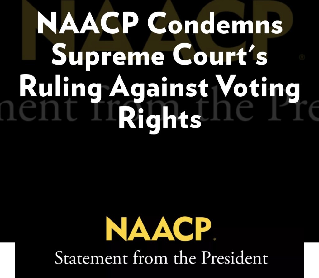 “The NAACP will not stand by idly in the face of this ruling which seeks to diminish our standing and render us second-class citizens. This is not a moment for any one of us to sit on the sidelines. We are witnessing the full machinery of government aided by the Court disenfranchising and silencing Black America and hijacking democracy as we know it. We will continue to fight and ensure that our voices are heard this midterm election cycle.”