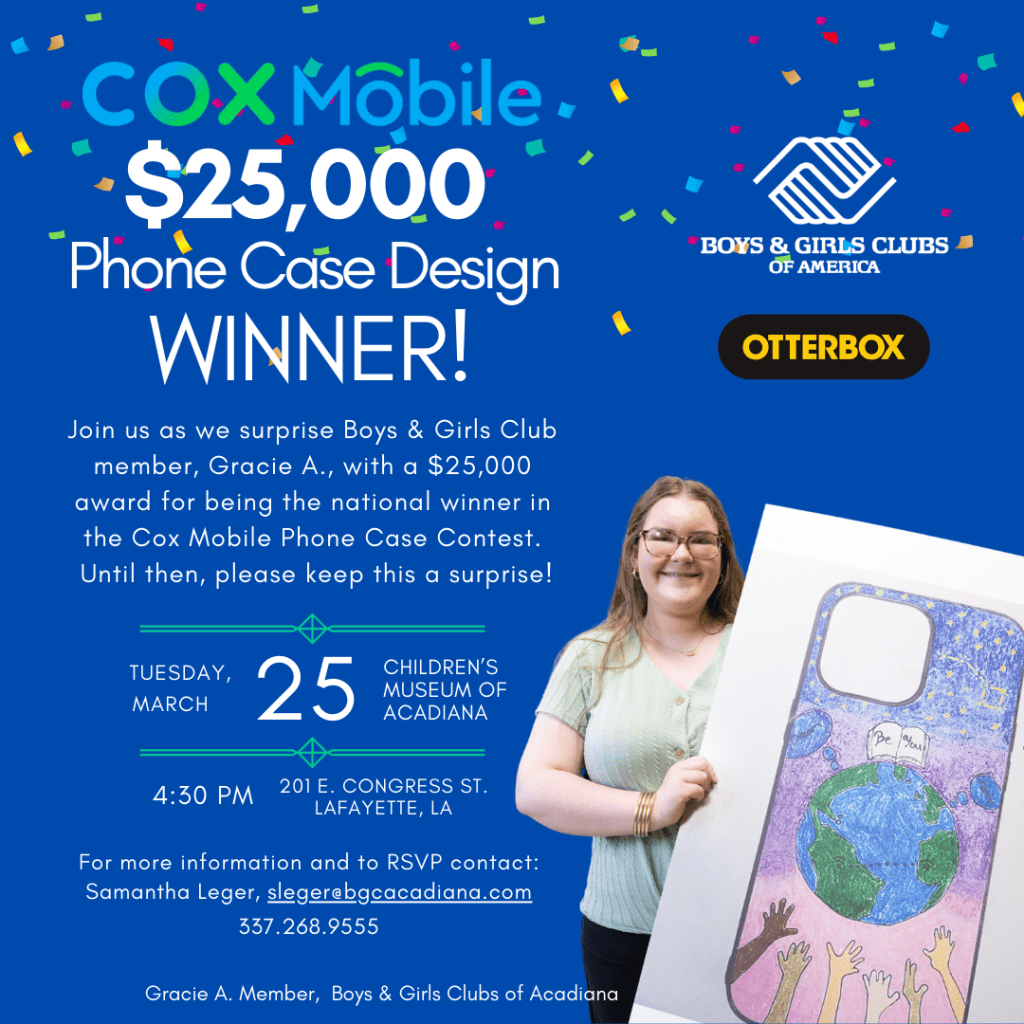 Local Acadiana Boys & Girls Club Member Selected as National Winner in Cox Mobile Phone Case Design Contest
